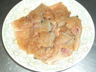 ![]() 鯉はウロコを取り三枚おろしにして骨きり加工をします 鯉の骨きり 調理方法 ←このページの鯉料理のレシピは鯉を骨きりに調理するんだ ![]() 骨きりをした鯉に下味(醤油と日本酒)を付けて置きます ![]() 大根は2センチ幅に筒切りし、米のとぎ汁で下ゆでしてからだし汁で煮ます だし汁は市販のおでんの元でもよい。 ![]() 下味が付いた鯉に小麦粉を付けます ![]() ![]() 鯉を熱した油で揚げます ![]() ![]() ![]() 油で揚げた鯉と大根を一緒に煮て仕上げます ![]() 鯉を鍋に入れてからあまり煮すぎないように注意します ![]() 鯉のあらい・鯉のあら汁・鯉屋大根 鯉づくし三点 |