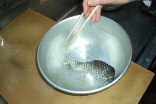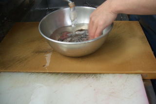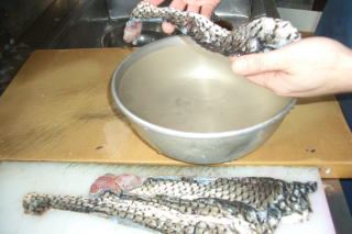| 鯉料理の技、食用鯉の料理方法/鯉の皮湯引き |